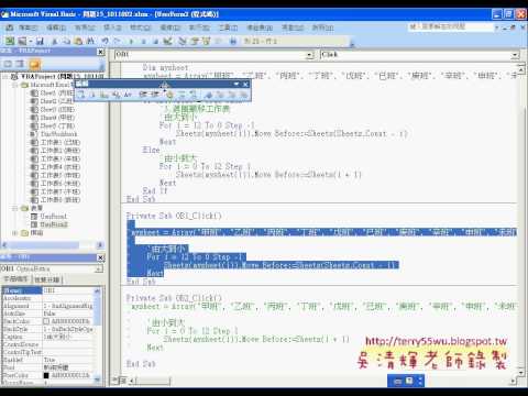 EXCEL VBA辦公自動化--自強基金會2012 完整影音連結: http://www.youtube.com/playlist?list=PLsE34duTsJQwYO_uveNROx0x2dK...
